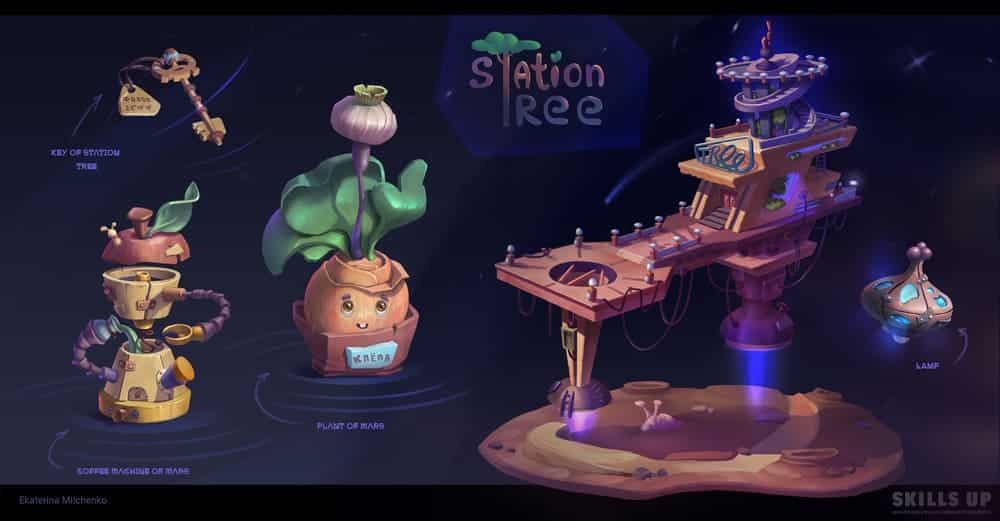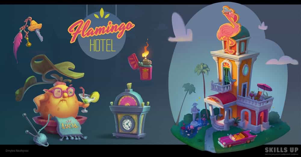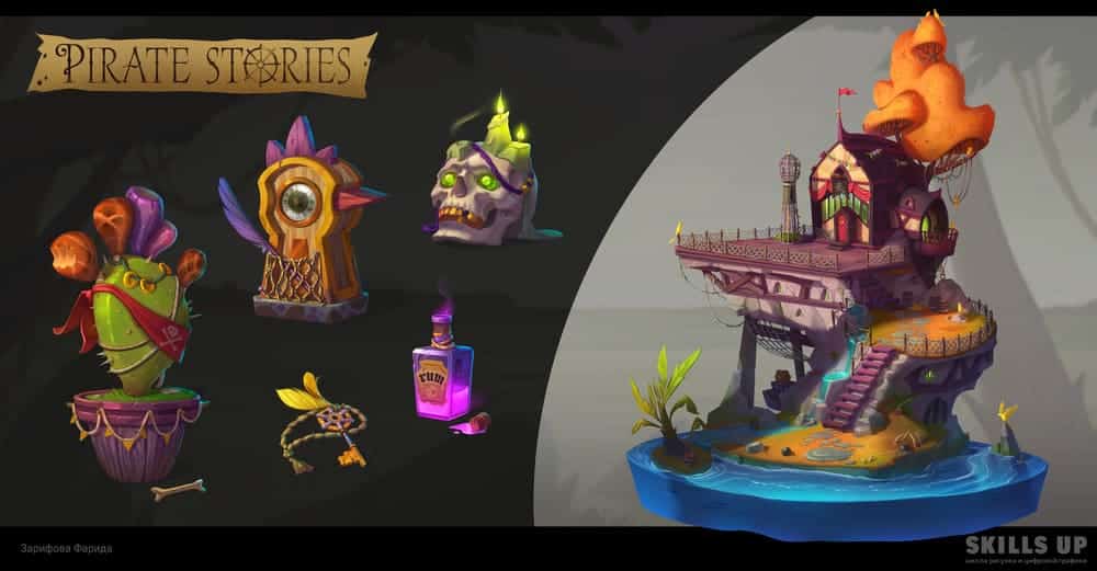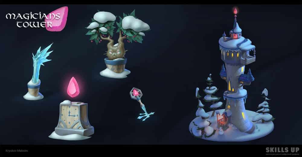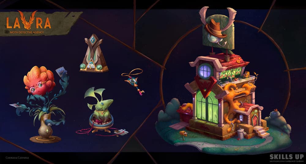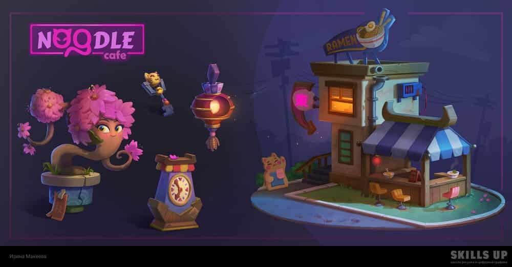 На курсе вы еще сильнее прокачаете навыки работы с объемом, цветом, тоном, материалами и создадите целый проект, посвященный одной теме, — дом с элементами окружения и несколько объектов к нему. И да, мы не случайно сказали про репетицию будущей работы: особое внимание на курсе уделяется системности и цельности ведения проекта, следованию заданной стилистике, концепту и финальному рендеру, а также соблюдению дедлайнов. Наши студенты говорят, что уже во время обучения на 2D-графике Middle находили первые коммерческие заказы.