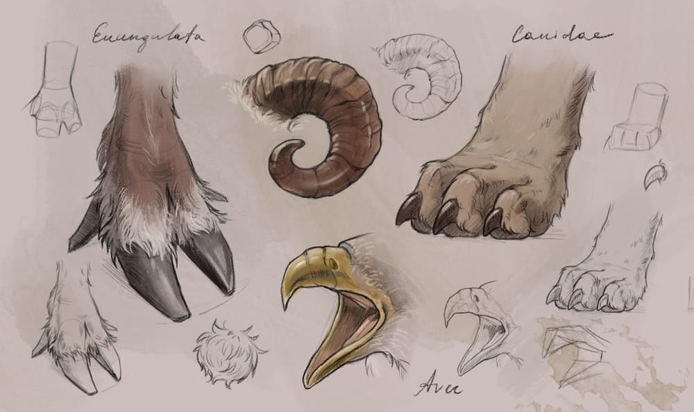 - •Голова, лапы, крылья, хвосты, рога, наросты, зубы, когти