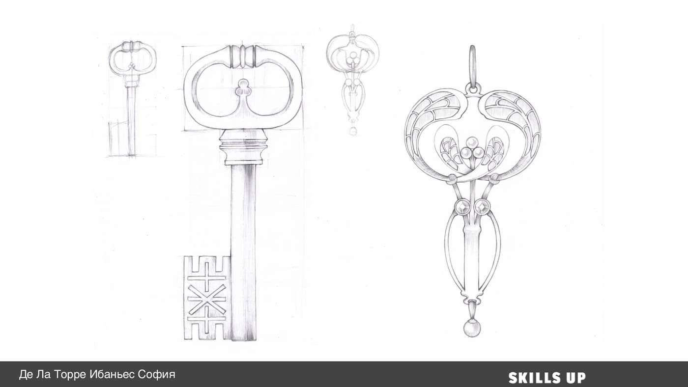 - •Аналитические зарисовки объектов во фронтальном ракурсе (ключ/украшение/оружие)